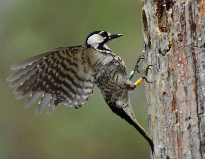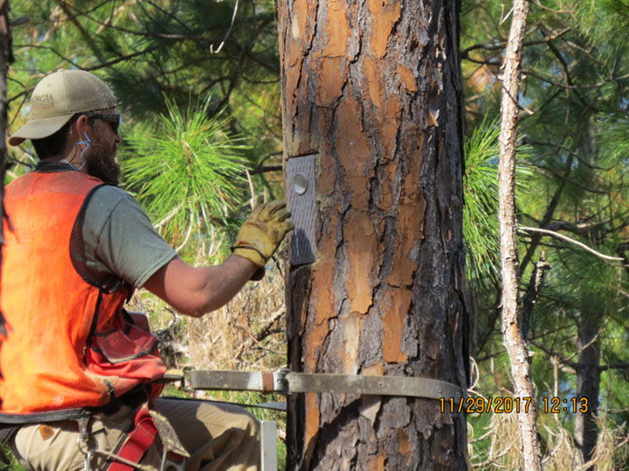 To restore the habitat, the Georgia Department of Natural Resources is partnering with the U.S. Forest Service and the Georgia Ornithological Society. Jarrell is in an important location because it is adjacent to the Oconee National Forest and Piedmont National Wildlife Refuge, lands that already have established red-cockaded woodpecker populations. Once timber management is complete, nesting inserts will be placed in selected trees by DNR’s Wildlife Resources Division to help the birds establish new family clusters. As “cooperative breeders,” these woodpeckers rely on family groups to help raise their young. The inserts provide nest cavities that are critical for red-cockaded woodpeckers.