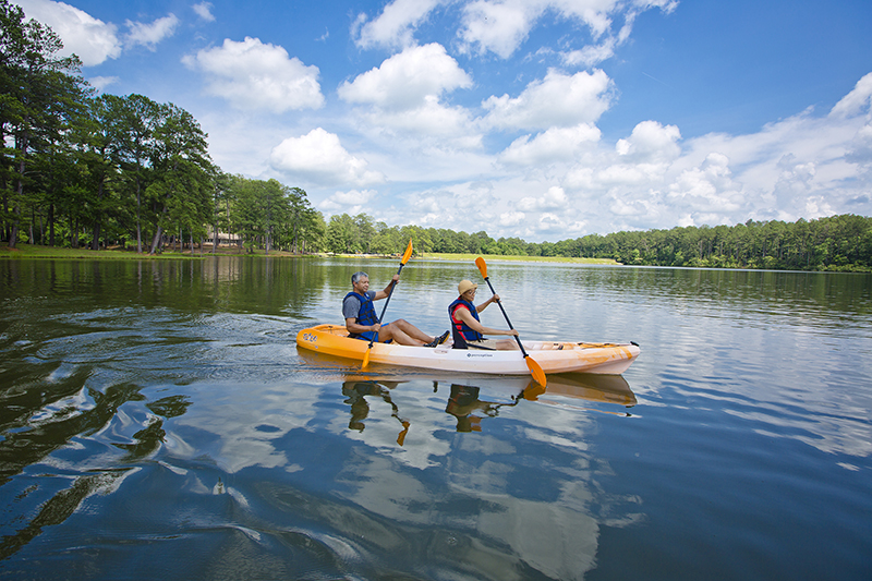 Beat the crowds of north Georgia this summer and head south to Indian Springs State Park. The entrance of this park is one-of-a-kind, as a cascading waterfall greets you as you enter the park. After you’re done mountain biking or hiking on their trails, you can get in the water on the cascading waterfall. One of the park's most popular attractions is the 800-acre lake, which is ideal for kayaking and canoeing. Rent a boat and paddle around the lake, taking in the scenic views and wildlife along the way. It's a great way to relax and enjoy nature away from the crowds of the most popular lakes in Georgia.