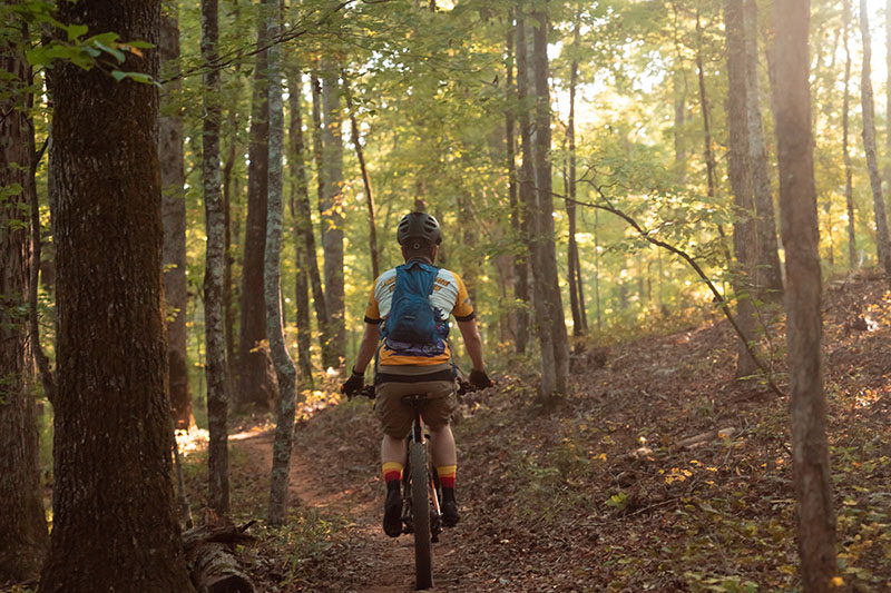But that's not all Indian Springs State Park has to offer. Indian Springs trails connects to the nearby Dauset Trails. Mountain bikers should be all over these trails, but hardly anyone knows about it. Dauset Trails are among the best mountain bike trails in middle Georgia. It’s a perfect mix of technical riding with fast and flowing downhills, but there’s plenty trails for beginners as well. The Indian Springs trails connecting to the Dauset trails are also well maintained and provide beautiful sections of riding along the lake. And when it's time to rest and recharge, Indian Springs State Park has you covered with cozy cottages for overnight stays.